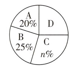 ∴$m=80×25\% =20$,$n\% =24÷80×100\% =30\%$,