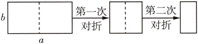 $2:1$ 对折两次后得到的小矩形纸片的长为 $b$,宽为 $\frac{1}{4}a$,