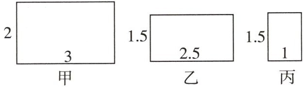 B 根据题意得,矩形甲的长与宽的比是 $3:2$,矩形乙的长与宽的比是 $5:3$,矩形丙的长与宽的比是 $3:2$,矩形的四个角都是直角,所以矩形甲和矩形丙相似。