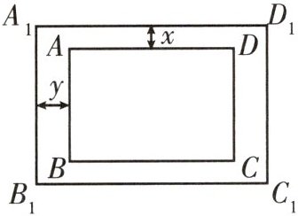 3 教材P88随堂练习T2变式 如图,在矩形花坛ABCD四周修筑小路,已知AB= 20m,AD= 30m.如果相对着的两条小路的宽均相等,宽度分别为x,y,试问小路的宽x与y的比值为多少时,能使得小路四周所围成的矩形$A_1B_1C_1D_1$和矩形ABCD相似.