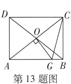 13 [2025 西安曲江一中月考]如图,矩形 ABCD 的对角线相交于点 O,过点 O 作 $ OG ⊥ AC $,交 AB 于点 G,连接 CG,若 $ ∠BOG = 16^\circ $,则 $ ∠BCG $的度数是