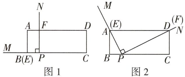 13 几何直观[2024南阳期中]如图1,在矩形ABCD中,$AB= 2,BC= 5,BP= 1$,点M在CB的延长线上,$∠MPN= 90^{\circ }$.将$∠MPN$绕点P按顺时针方向旋转,PM交边AB(或边AD)于点E,PN交边AD(或边CD)于点F,当PN旋转至PC处时,$∠MPN$的旋转随即停止.