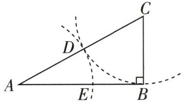 5 教材P97随堂练习变式[2024南充中考]如图,已知线段AB,按以下步骤作图:①过点B作$BC⊥AB$,使$BC= \frac {1}{2}AB$,连接AC;②以点C为圆心,以BC长为半径画弧,交AC于点D;③以点A为圆心,以AD长为半径画弧,交AB于点E.若$AE= mAB$,则m的值为(