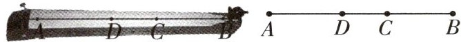 4 教材P98T1变式[2023达州中考]如图,乐器上的一根弦$AB= 80cm$,两个端点A,B固定在乐器面板上,支撑点C是靠近点B的黄金分割点,支撑点D是靠近点A的黄金分割点,则支撑点C,D之间的距离为
