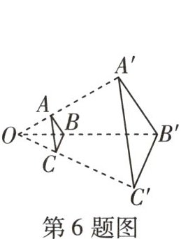 6 [2023长春中考]如图,$\triangle ABC和\triangle A'B'C'是以点O$为位似中心的位似图形,点$A在线段OA'$上.若$OA:AA'= 1:2$,则$\triangle ABC与\triangle A'B'C'$的周长之比为______