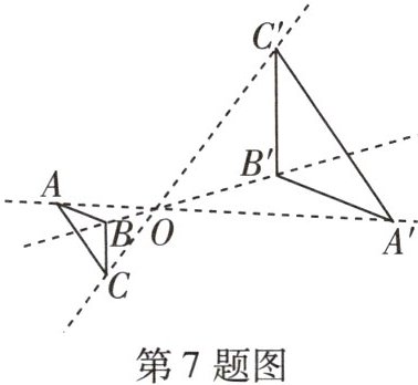 7 [2024枣庄市中区月考]如图,以点$O$为位似中心,把$\triangle ABC放大为原图形的2倍得到\triangle A'B'C'$,以下说法正确的是______
