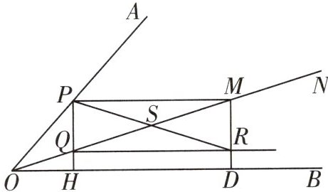 10 推理能力[2025佛山灯湖中学月考]如图,$ON为\angle AOB$中的一条射线,点$P在边OA$上,$PH\perp OB于H$,交$ON于点Q$,$PM// OB交ON于点M$,$MD\perp OB于点D$,$QR// OB交MD于点R$,连接$PR交QM于点S$.