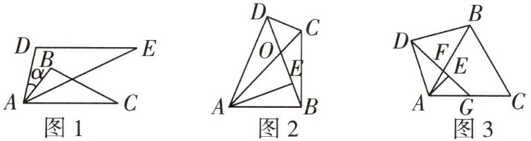 ①若$\alpha=25^{\circ}$,$\angle D= 100^{\circ}$,$\angle C= 28^{\circ}$,则$\angle BAE= $