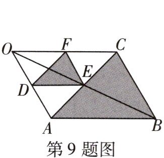 9 如图所示是利用图形的位似绘制的一幅“小鱼”图案,其中$O$为位似中心,且$OA= 2OD$,若图案中鱼身($\triangle ABC$)的面积为$S$,则鱼尾($\triangle DEF$)的面积为(