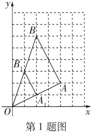 1 [2024沧州期末]如图,网格中每个小正方形的边长均为1,$△OA_{1}B_{1}与△OAB$的形状相同,大小不同,$△OA_{1}B_{1}是由△OAB$的各顶点变化得到的,则各顶点变化情况为 (