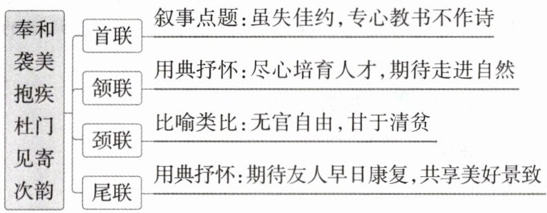例2【答案】 ①表达了不能与友人相聚,一起赋诗饮酒、饱览春色的遗憾;②宽慰友人,表达对友人能够战胜病患的信心和对以后美好生活的展望。