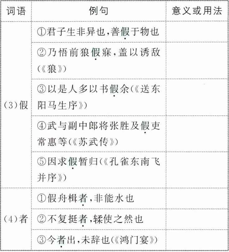(3)①动词,借助 ②动词,假装 ③动词,借 ④形容词,临时委任的 ⑤名词,假期
