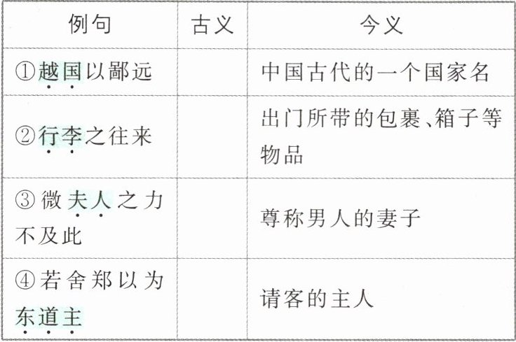 2.答案 ①越过别国 ②外交使者 ③那个人,指秦穆公 ④东方道路上(招待过客)的主人