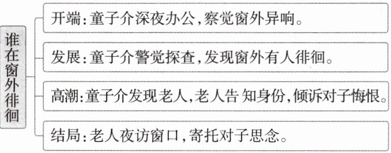 ③情节发展部分写童子介又猜测是有人想反映情况,使读者也产生了猜测的心理。④反复描述窗外人的怪异行为,却迟迟不揭示窗外人是谁,进一步引发读者探究的欲望。