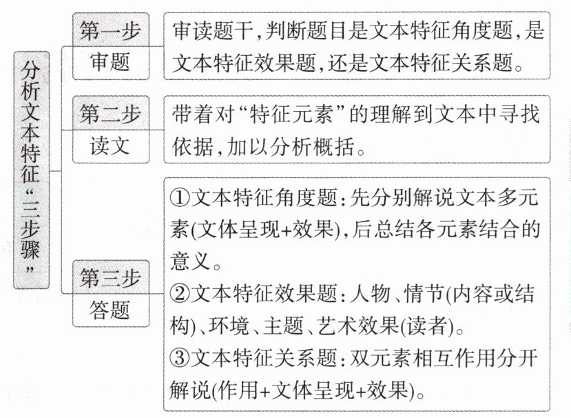 ③文本特征关系题:双元素相互作用分开解说(作用+文体呈现+效果)。|
