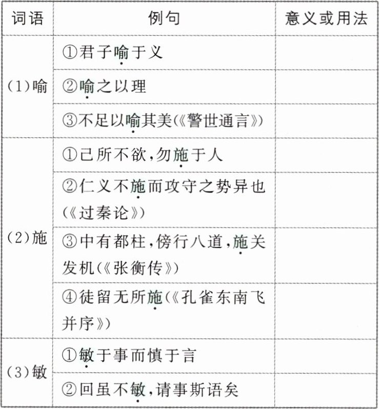 (1)①动词,知晓,明白 ②动词,说明,告知 ③动词,比喻