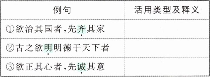 4 答案 ①使动用法,使……整齐有序 ②使动用法,使……彰明 ③使动用法,使……真诚