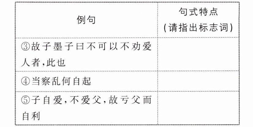4答案①判断句标志词:者也②判断句标志词:也③判断句标志词:……者……也④宾语前置句标志词:何(代词)、自(介词)⑤宾语前置句(两处)标志词:自(代词)、爱(动词);自(代词)、利(动词)