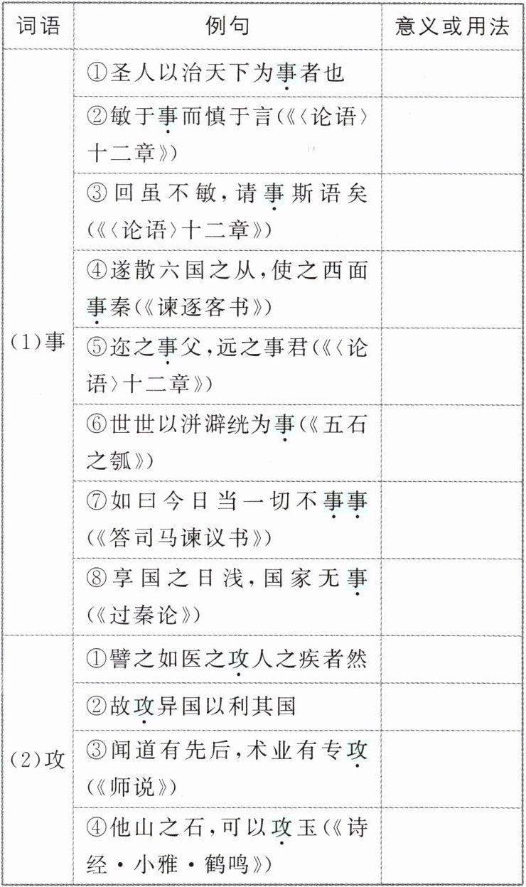 (1)①名词,事务②动词,做事③动词,实践,从事④动词,侍奉,为……服务⑤动词,侍奉⑥名词,职业⑦动词,办(事)/名词,事情⑧名词,事件