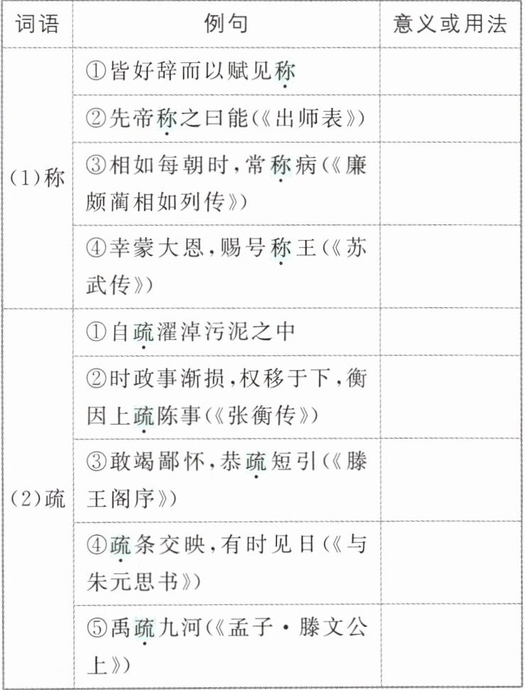 (2)①动词,远离 ②名词,奏章 ③动词,陈述 ④形容词,稀疏 ⑤动词,疏通