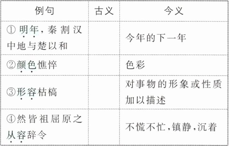 2 答案 ①第二年 ②脸色 ③外貌,模样 ④委婉得体
