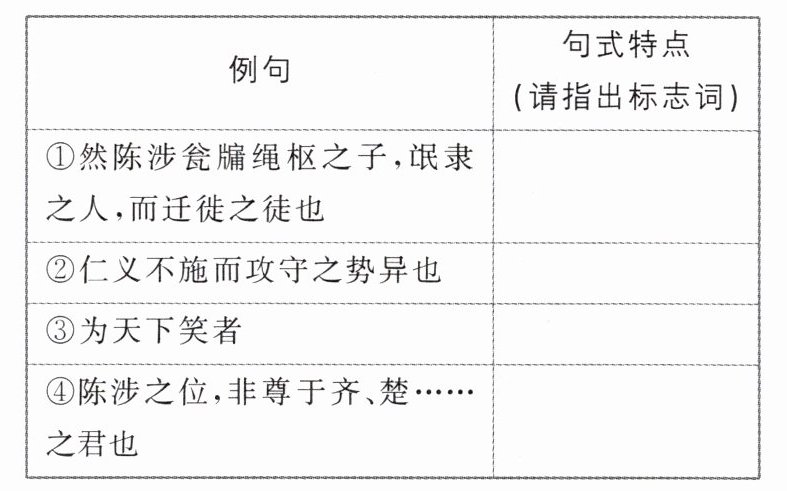 5答案①判断句标志词:也②判断句标志词:也③被动句标志词:为④状语后置句标志词:于