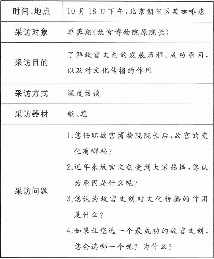 )A.采访地点不应该选择咖啡店,如果可以,最好选在故宫博物院里。