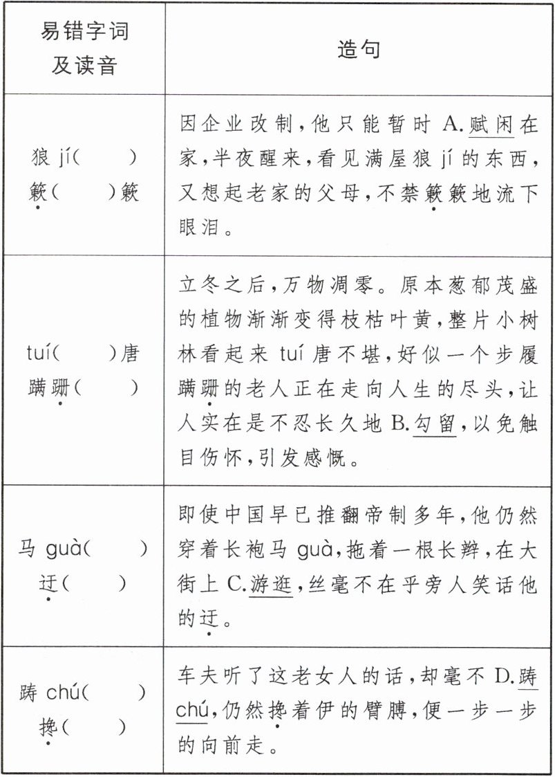 2.积累卡片中,造句一栏画线词语运用有误的一项是 (