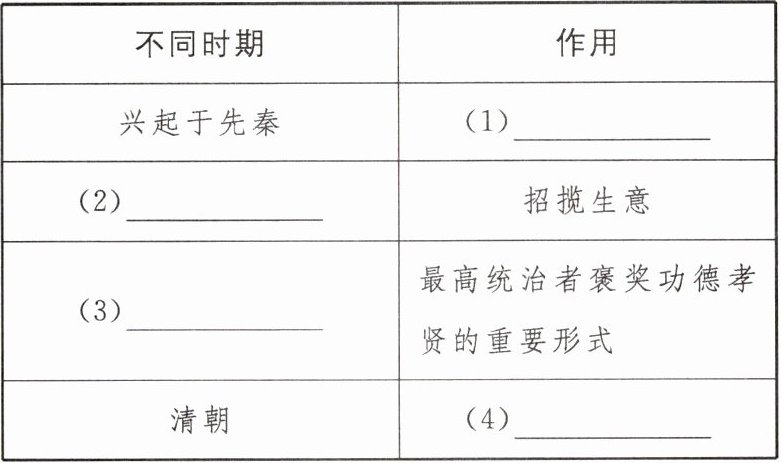 12. 阅读全文,梳理“匾额”在不同时期的作用,根据提示将下面的表格补充完整。(4分)