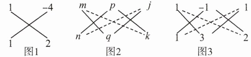 解:如图1,其中$1=1×1,-8=(-4)×2$,而$-2=1×(-4)+1×2,$$\therefore x^{2}-2xy-8y^{2}=(x-4y)(x+2y)$.同样地,对于形如$ax^{2}+bxy+cy^{2}+dx+ey+f$的二元二次式也可以用“十字相乘法”来分解因式.如图2,将$a$分解成$mn,m,n$作为第1列,$c$分解成$pq,p,q$作为第2列,$f$分解成$jk,j,k$作为第3列.如果$mq+np=b,pk+qi=e,mk+nj=d$,即第1,2列、第2,3列和第1,3列都满足十字相乘规则,那么原式$=(mx+py+j)(nx+qy+k).$
