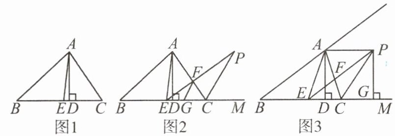 (3)如图 3,在(2)的条件下,连接 PA,过点 P 作$PG⊥BM$于点 G,若$∠EAD=∠CAD$,且$∠B+∠CPE=\frac {10}{7}∠CPG$,求$∠BEP$的度数.