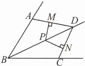 ),则$\angle ADB=\angle CDB$,即$BD$平分$\angle ADC$。又因为$PM\perp AD$,$PN\perp CD$,点$P$在$BD$上,根据角平分线的性质: