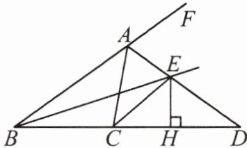 11. 如图,在$△ABC$中,点D在边BC的延长线上,$∠ACB=100^{\circ }$,$∠ABC$的平分线交AD于点E,过点E作$EH⊥BD$,垂足为H,且$∠CEH=50^{\circ }$.