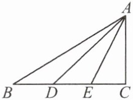 6.(教材P4习题T3变式)(1)如图,在$\triangle ABC$中,$∠C=90^{\circ }$,D,E是BC上的两点,连接AD,AE,则图中钝角三角形的个数为