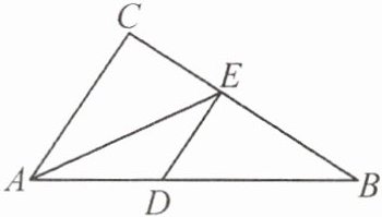 12.如图,$△ABC$的面积是$18cm^{2}$,点D,E分别位于AB,BC上,$DE// AC$,连接AE,且$AD=4cm$,$DB=5cm$,求$△ABE$的面积.