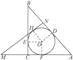 (2)证明:如图,过点O作OH⊥MN于点H,连接OD,OE,OF,则OE⊥BC,OF⊥AC,OD⊥AB.