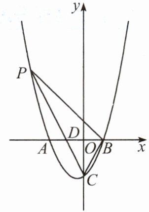 (2) 若 $ P $ 是二次函数图象上的一点,且点 $ P $ 在第二象限,线段 $ P C $ 交 $ x $ 轴于点 $ D $,$ \triangle P D B $ 的面积是 $ \triangle C D B $ 面积的 2 倍,求点 $ P $ 的坐标。