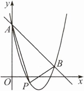 9. (2024·徐州)如图,$A$,$B$为一次函数$y=-x+5$的图象与二次函数$y=x^{2}+bx+c$的图象的公共点,点$A$,$B$的横坐标分别为0,4.$P$为二次函数$y=x^{2}+bx+c$的图象上的动点,且位于直线$AB$的下方,连接$PA$,$PB$.