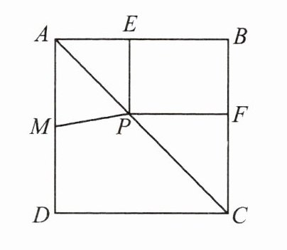 1.(2025·重庆复旦中学期中)如图,在正方形 ABCD 中,$AB=6cm$,动点 P 从点 A 出发,以$\sqrt {2}cm/s$的速度沿对角线 AC 向点 C 移动(运动到点 C 停止运动),过点 P 作$PE⊥AB$,垂足为 E,过点 P 作$PF⊥BC$,垂足为 F,M 为 AD 的中点,连接 PM.设点 P 移动的时间为 x s,$△APM$的面积为$y_{1}cm^{2}$,四边形 EBFP 的面积为$y_{2}cm^{2}(y_{1}≠0,y_{2}≠0).$