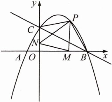 (2)$P$是直线$BC$上方抛物线上的一个动点,连接$PC,PB$,$M$为$x$轴上的一个动点,$N$为$y$轴上的一个动点,连接$PM,PN,MN$.当$\triangle PBC$的面积取得最大值时,求点$P$的坐标及此时$PM+MN+PN$的最小值.