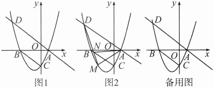 (2)如图 2,M为直线BC下方抛物线上的一点,连接DM交BC于点N,连接AM,AN,求$△AMN$面积的最大值及此时点M的坐标.