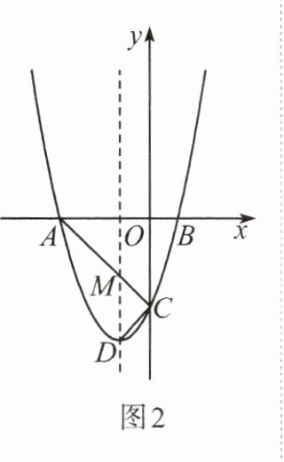 (2)如图 2,连接AC,DC,直线AC交抛物线的对称轴于点M,若在直线AC上方的抛物线上存在一点P,连接PM,PC,使得$S_{△PMC}=2S_{△DMC}$,求点P的坐标.