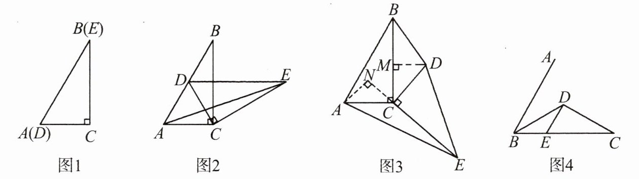 (1)[操作发现]如图2,固定△ABC,使△DEC绕点C旋转,当点D恰好落在边AB上时: