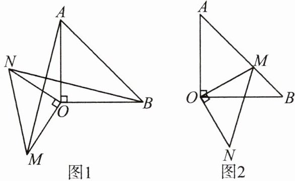 因为$\triangle AOB$和$\triangle MON$都是等腰直角三角形,所以$OA = OB$,$OM = ON$,$\angle AOB=\angle MON = 90^{\circ}$,$\angle OAB=\angle OBA = 45^{\circ}$。
