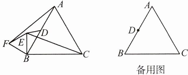 (3) 当点 $ D $,$ E $,$ F $ 在同一条直线上时,请你在备用图中画出符合条件的图形,并求出此时 $ BE $ 的长。
