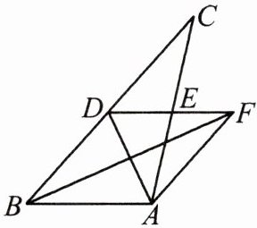 8.如图,在$△ABC$中,$BC=2AB$,D,E分别是边BC,AC的中点.将$△CDE$绕点E旋转得$△AFE$,已知$△CDE$与$△AFE$关于点E成中心对称.