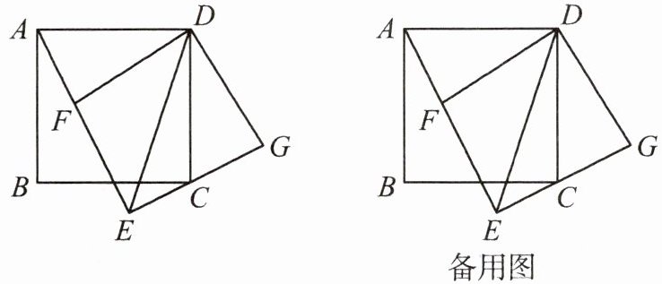 13.如图,正方形ABCD的边长为2,F为其内部的一点,且点F与点B之间的距离为1.将$△ADF$绕点D逆时针旋转$90^{\circ }$得到$△CDG$,AF,GC的延长线交于点E,连接DE.