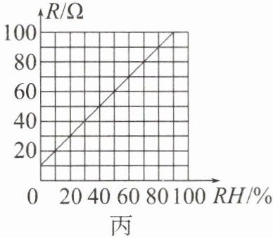 由题图丙可知,装置能监测湿度 $RH$ 的最大值是 $50\%$。