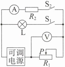 (3)只闭合开关$S_{2}$,电流表的测量范围为0~0.6A,电压表的测量范围为0~15V。调节电源电压,使移动$R_{1}$滑片P的过程中,两个电表先后都能达到满刻度,且电路安全,求此时电源电压的范围。