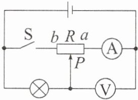 D. 接入灯泡后,将滑片P向右移动时,电压表的示数将变大